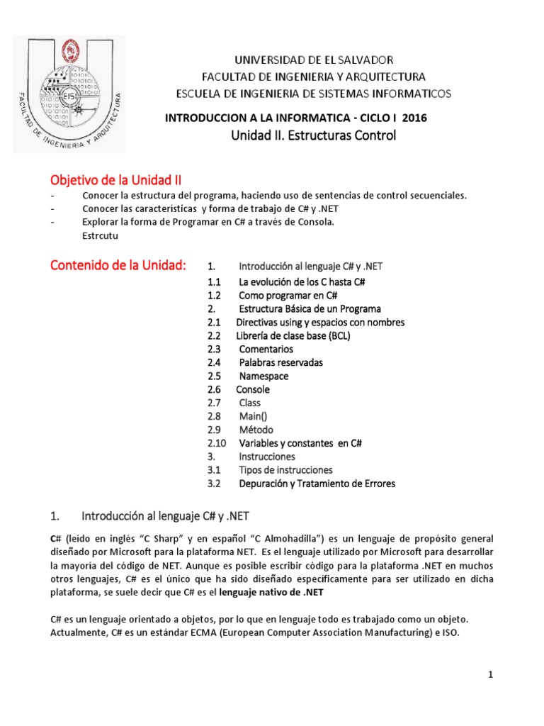 Introducción a C# y Estructuras de Control