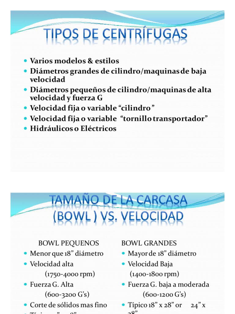 máxima fuerza “G” para obtener un punto de corte mas fino.
