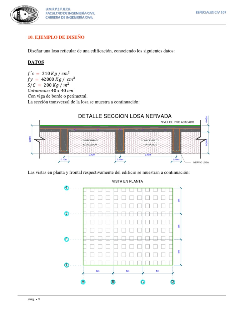 Diseñar una losa reticular de una edificación, conociendo los siguientes datos: