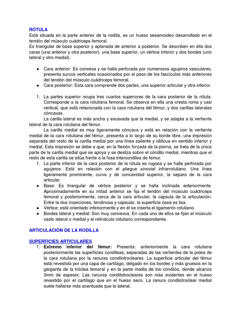 1. La parte inferior de la cara posterior de la rótula es rugosa y se halla perforada por