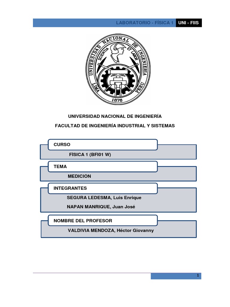 LABORATORIO - FÍSICA 1 UNI - FIIS