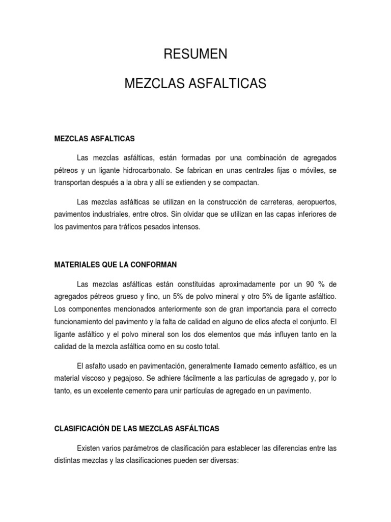 Las mezclas asfálticas, están formadas por una combinación de agregados