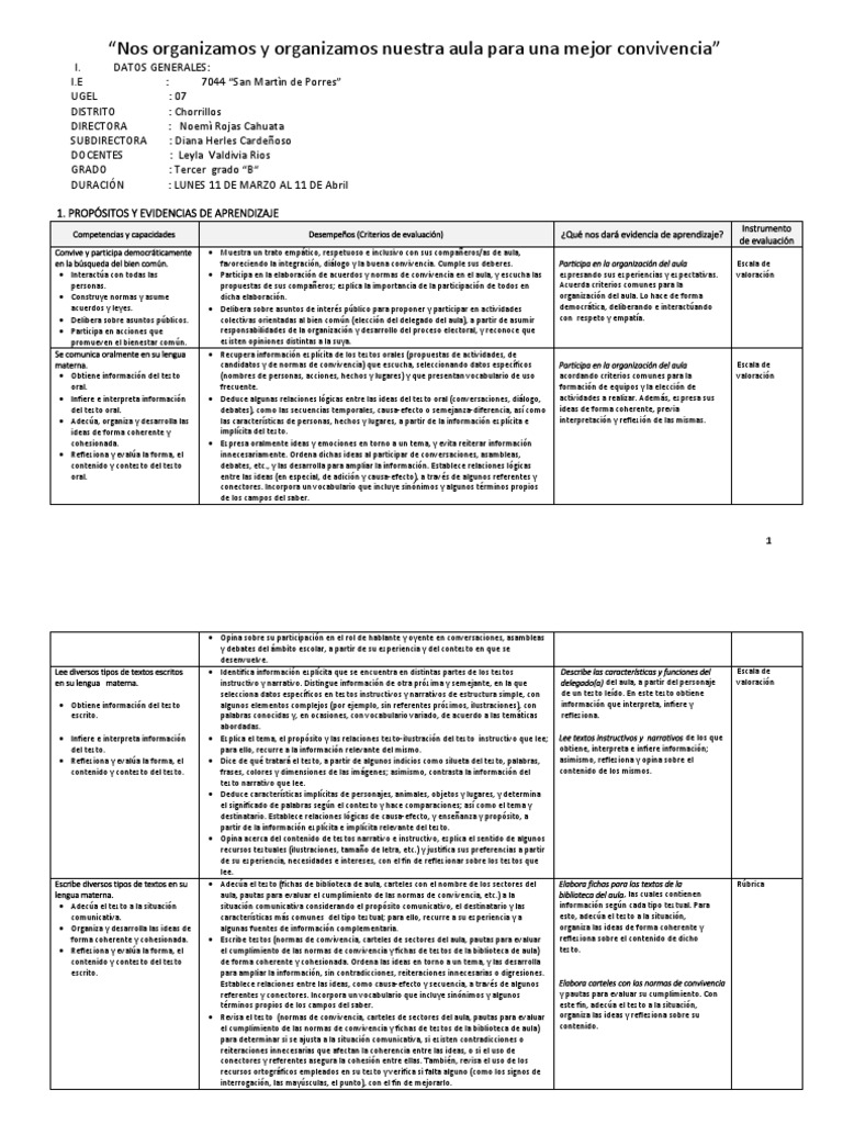 de manera responsable a los representantes del aula contenido y el propósito del mismo y reconstruir la secuencia de
