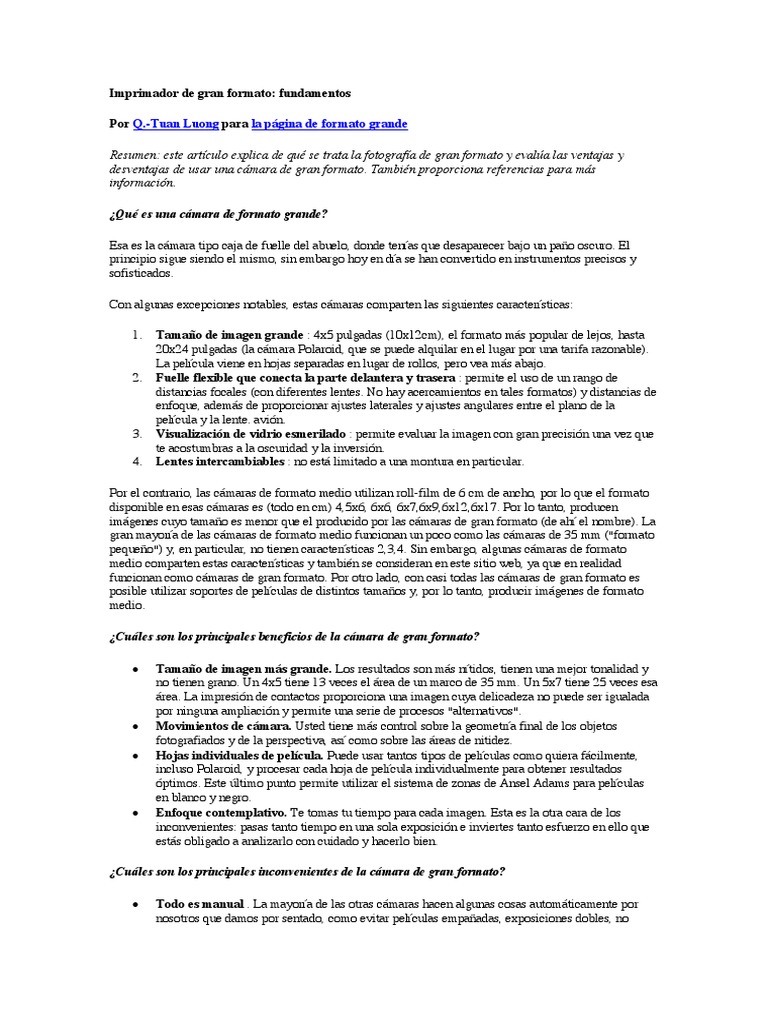 desventajas de usar una cámara de gran formato. También proporciona referencias para más