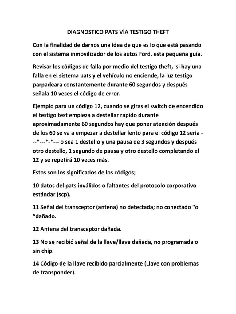 DIAGNOSTICO PATS VÍA TESTIGO THEFT