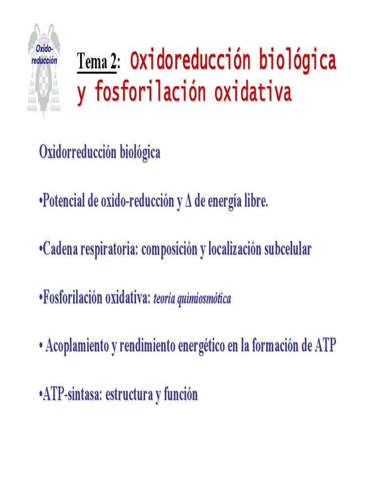 reducción Tema 2: Oxidacción biológica de nutrientes NADH + H+