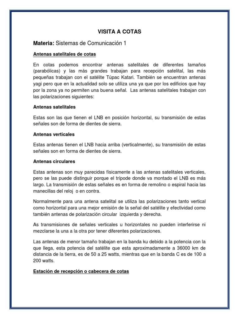 pequeñas trabajan con el satélite Túpac Katari. También se encuentran antenas