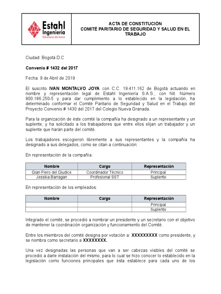 determinado conformar el Comité Paritario de Seguridad y Salud en el Trabajo del