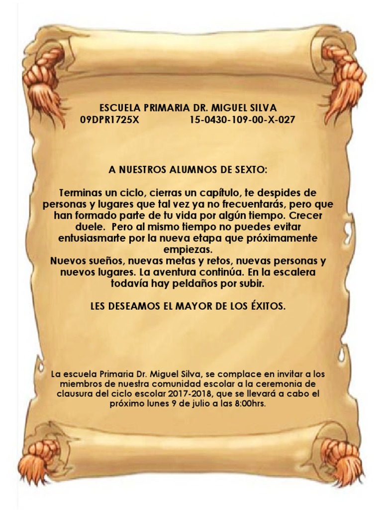 La escuela Primaria Dr. Miguel Silva, se complace en invitar a los