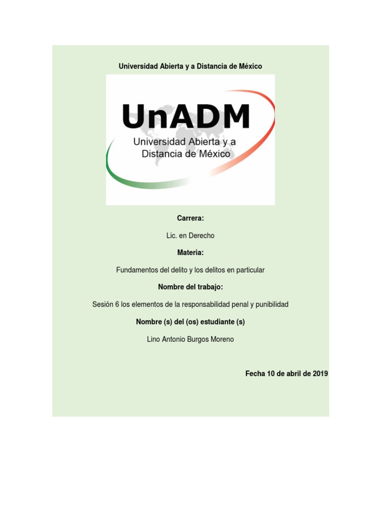 Sesión 6 los elementos de la responsabilidad penal y punibilidad