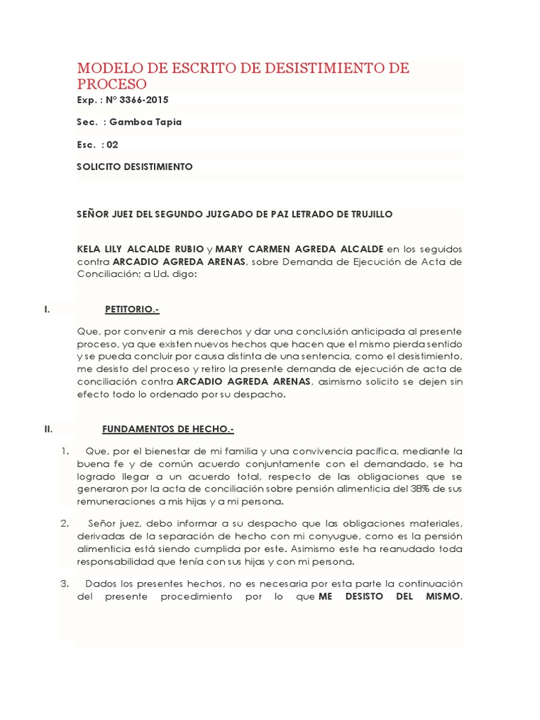 MODELO DE ESCRITO DE DESISTIMIENTO DE