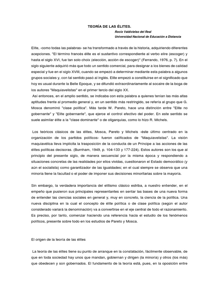 de las élites" de Pareto. De acuerdo con esta teoría, la pertenencia a la élite no es