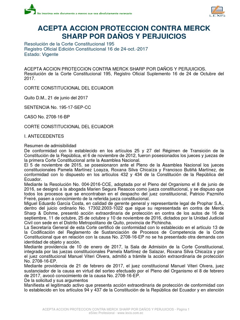 ACEPTA ACCION PROTECCION CONTRA MERCK SHARP POR DAÑOS Y PERJUICIOS - Página 1