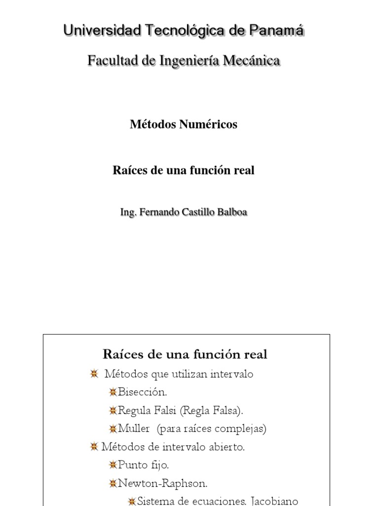 La determinación de las raíces de una ecuación es uno de los problemas más
