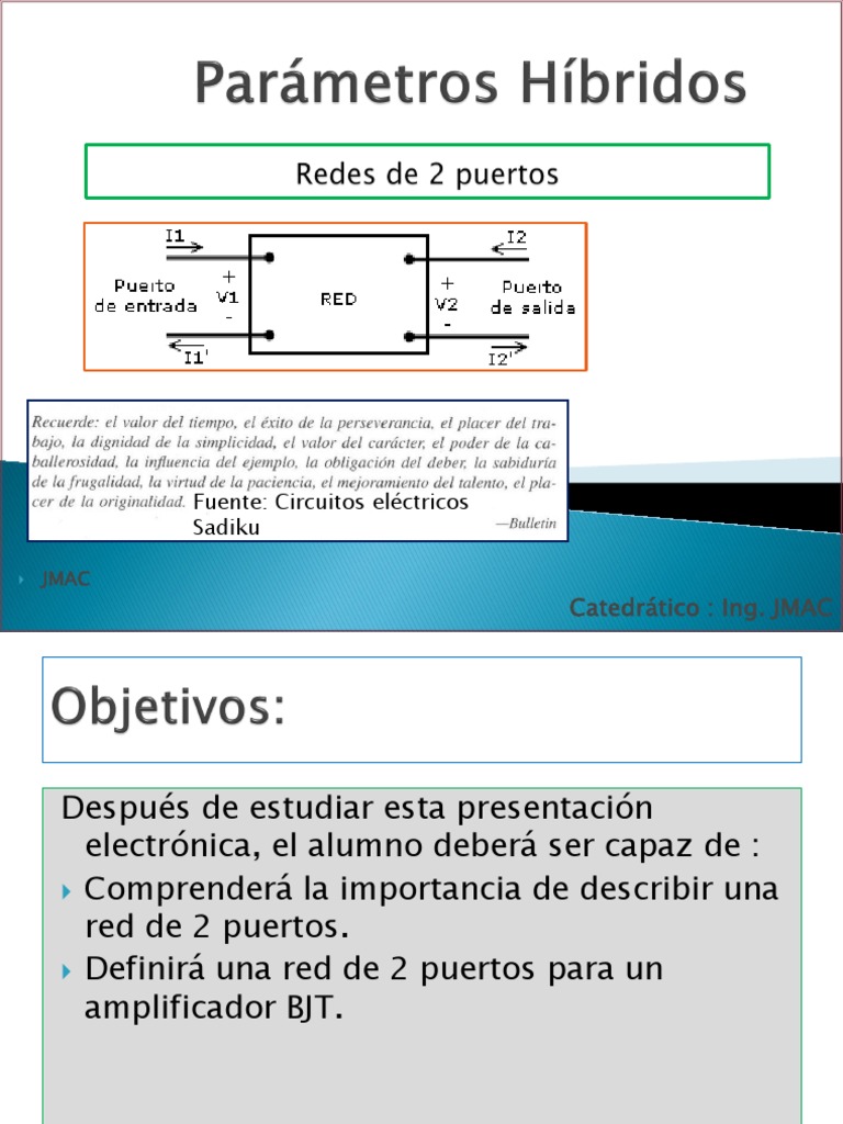 parámetros de una red de 2 puertos, lo cual permite