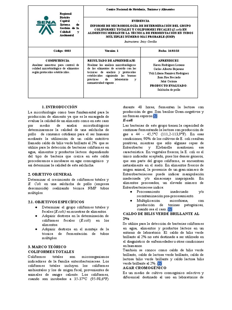 evaluar la calidad de un alimento como en este caso E-coli
