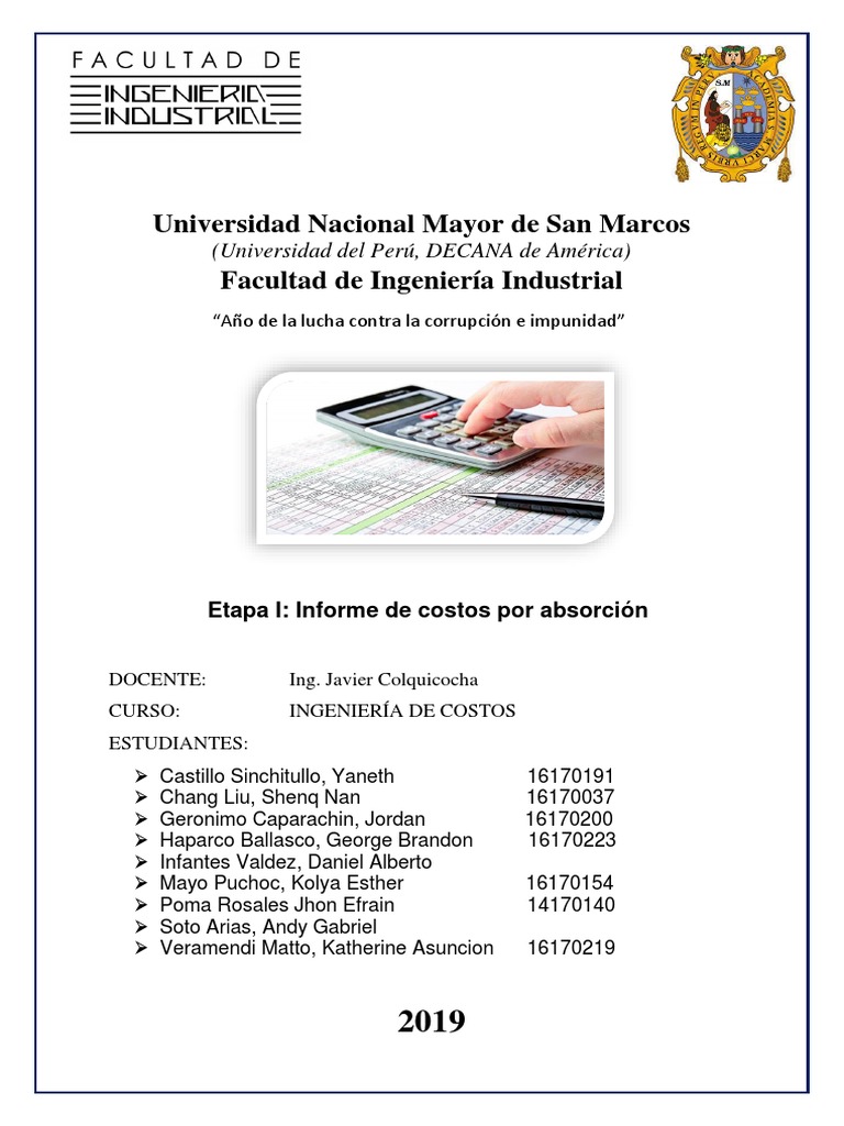 Ingeniería de Costos Facultad de Ingeniería Industrial
