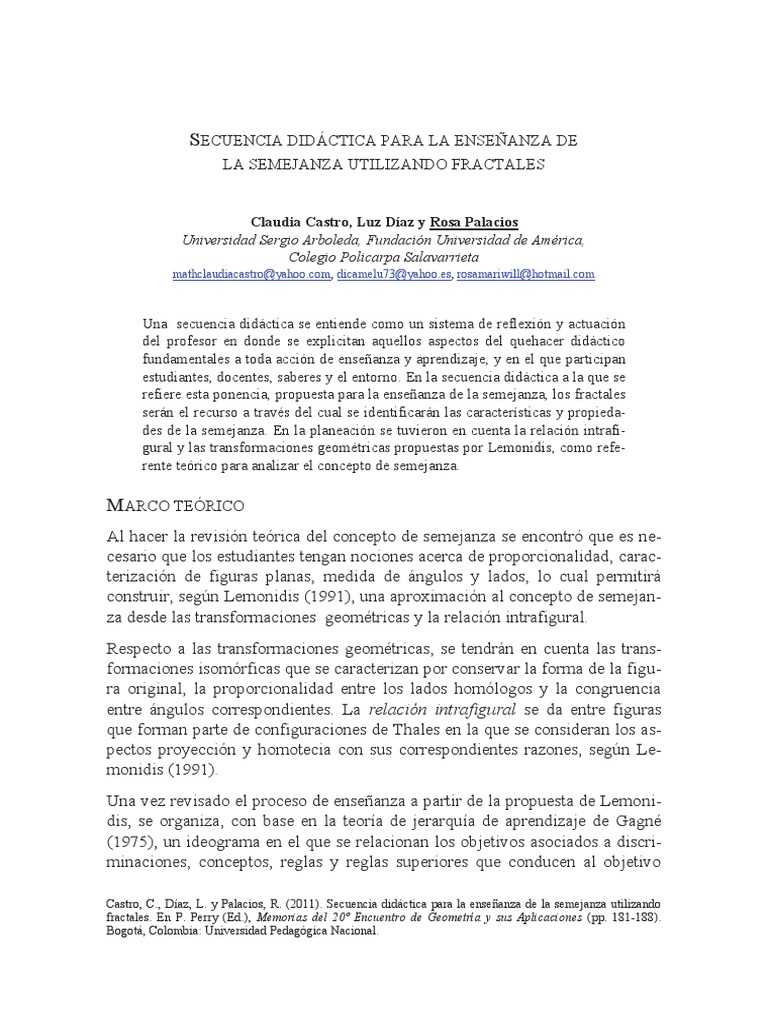 Castro, C., Díaz, L. y Palacios, R. (2011). Secuencia didáctica para la enseñanza de la semejanza utilizando