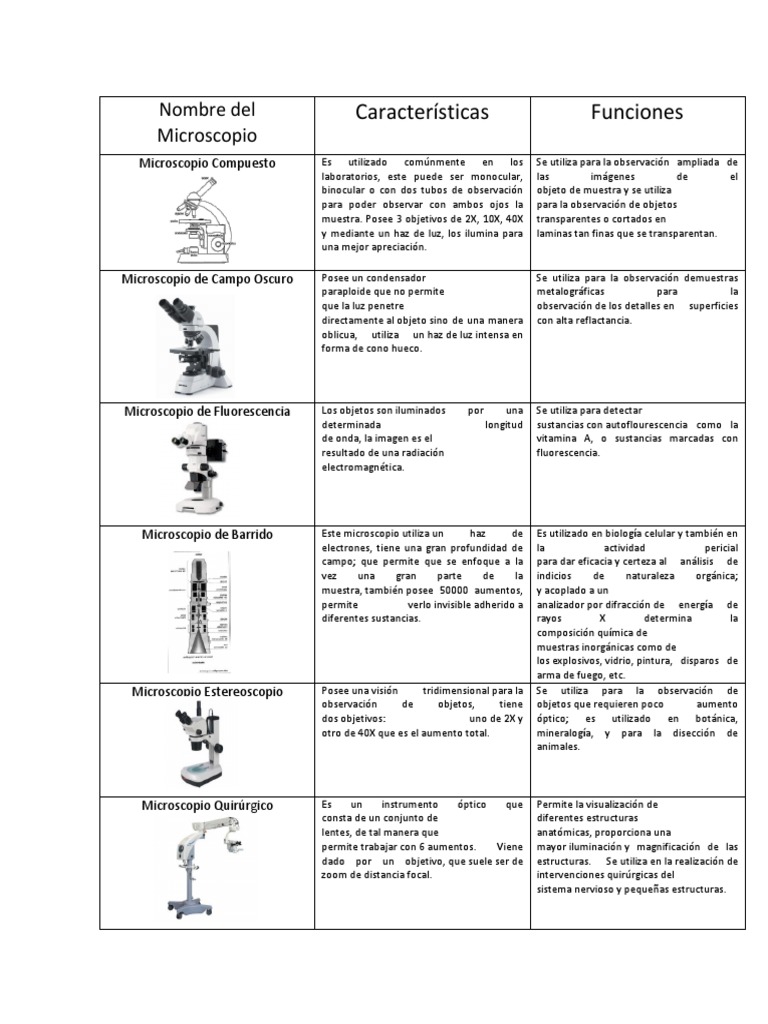 Microscopio Estereoscopio Posee una visión tridimensional para la Se utiliza para la observación de