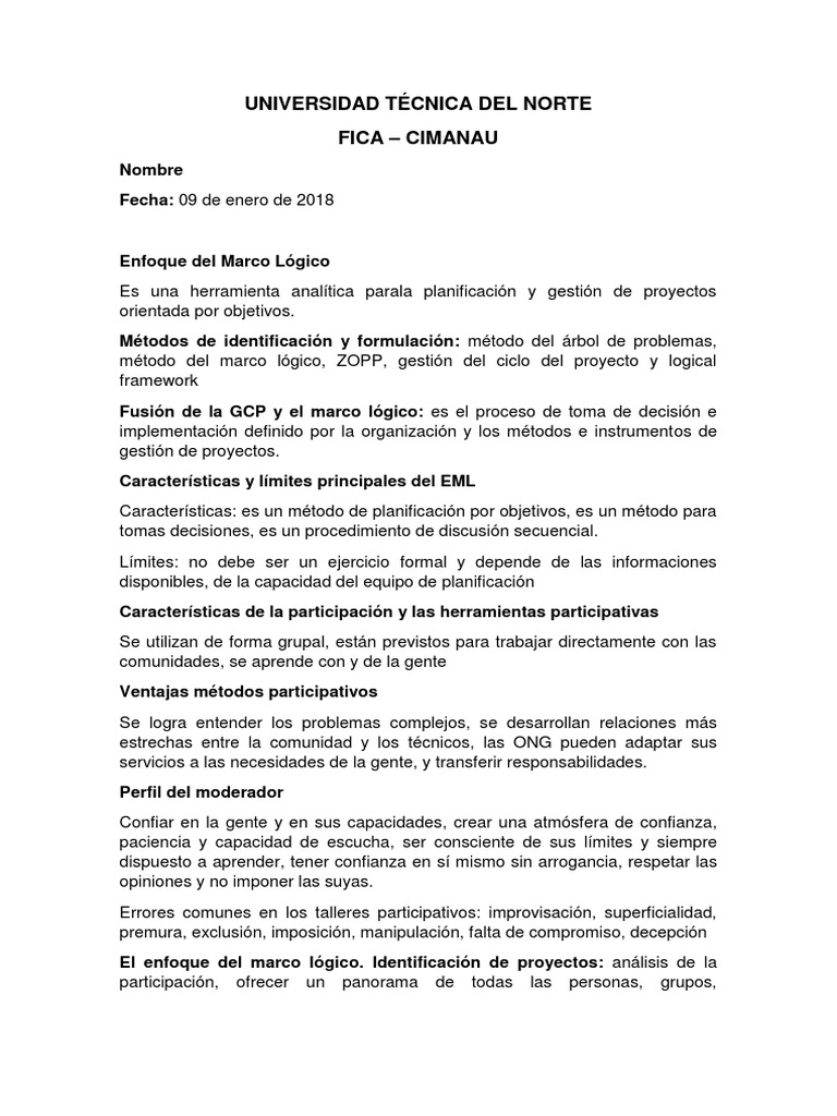 Enfoque del Marco Lógico