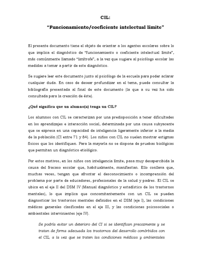 funcionamiento intelectual límite (CIL), cuyas características particulares se