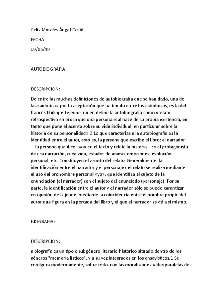 historia de su personalidad».3 Lo que caracteriza a la autobiografía es la