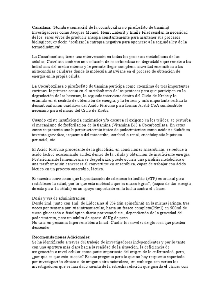 células; Carzilasa contiene una solución de cocarboxilasa no degradable que resiste a las