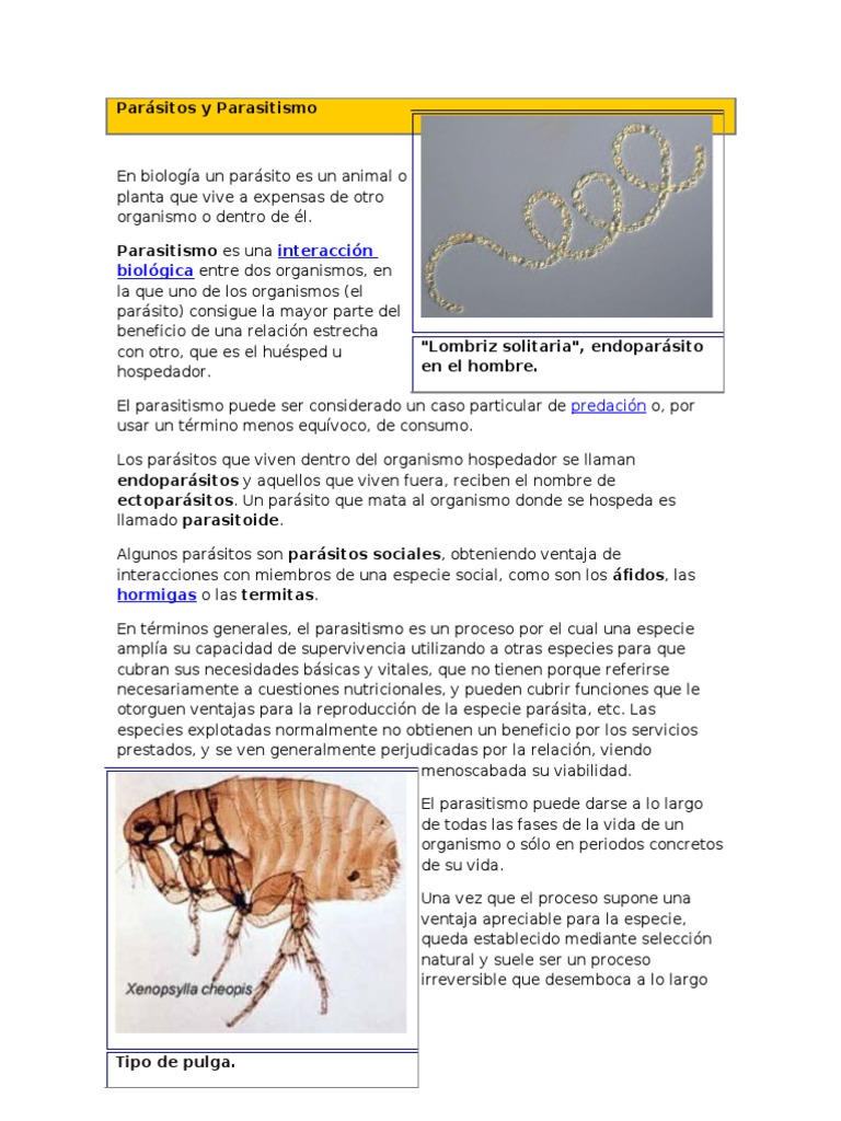 (pulgas, liendres, piojos, etc). Cuando los huéspedes viven en el interior del