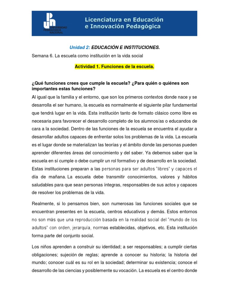 Actividad 1. Funciones de la escuela.