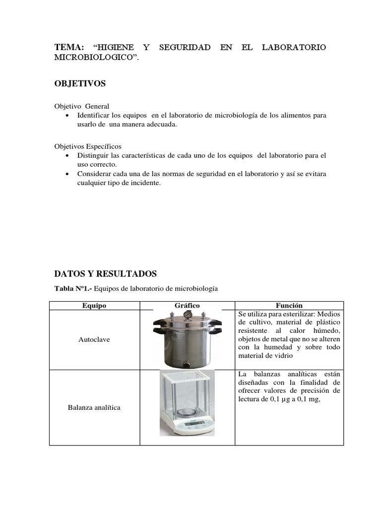 Identificar los equipos en el laboratorio de microbiología de los alimentos para