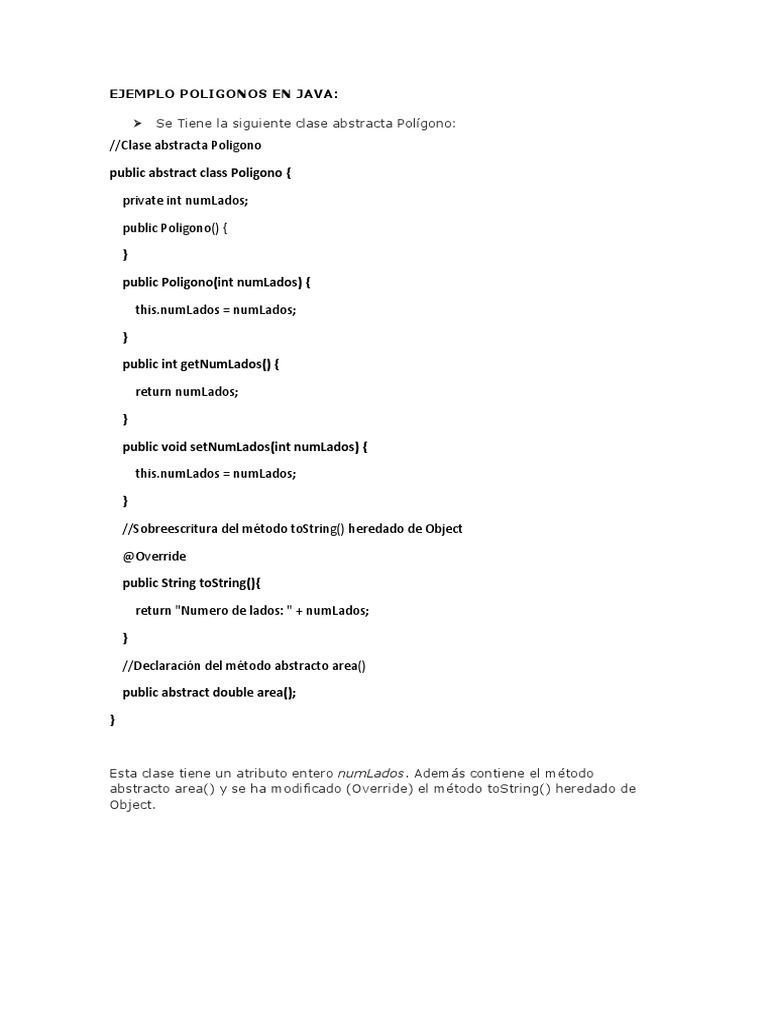 Se Tiene la siguiente clase abstracta Polígono:
