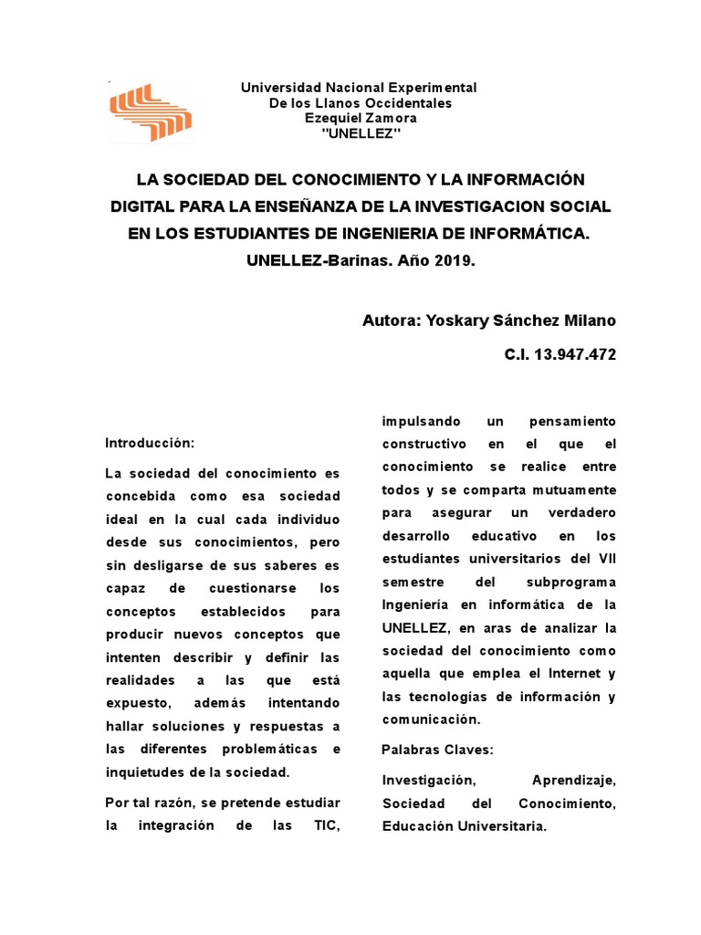 Por tal razón, se pretende estudiar Sociedad del Conocimiento,