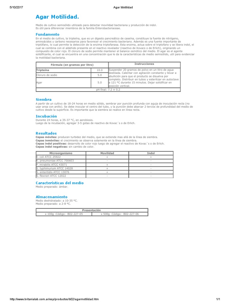 Medio de cultivo semisólido utilizado para detectar movilidad bacteriana y producción de indol.