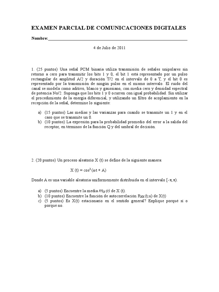 EXAMEN PARCIAL DE COMUNICACIONES DIGITALES