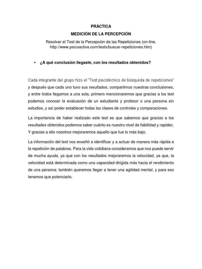 Cada integrante del grupo hizo el “Test psicotécnico de búsqueda de repeticiones”