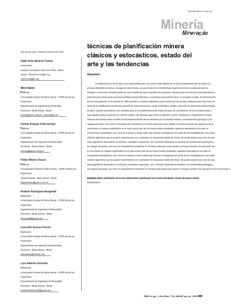 tiende a dar lugar a algoritmos de pits con imposibles de autores demostraron que el enfoque estocástico podría estas metodologías en la industria minera. La revisión
