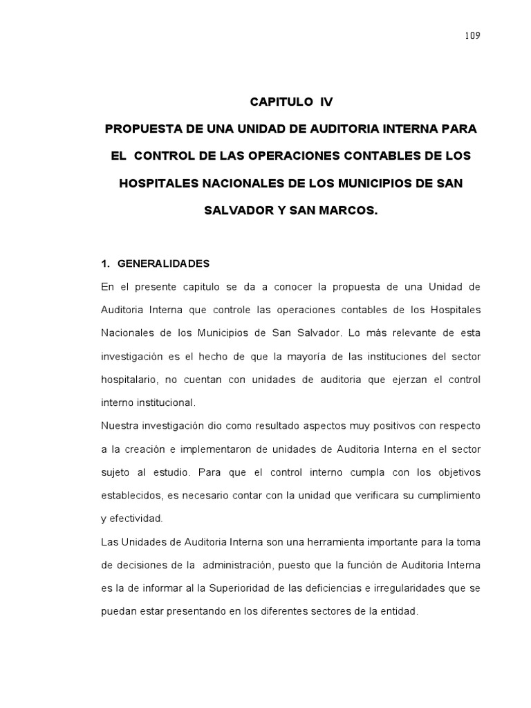 Auditoria Interna que controle las operaciones contables de los Hospitales
