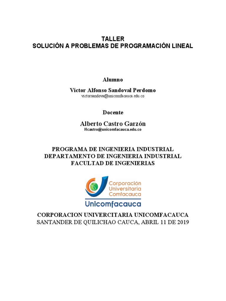 correspondientes y se formule el modelo matemático. Se pide seleccionar y resolver 5