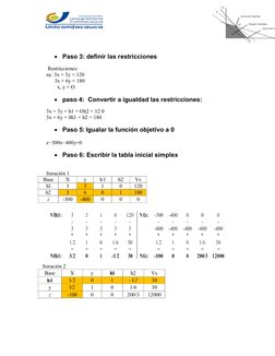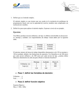 2. Definir los pasos para aplicar el método simplex. Expresar a través de un ejemplo.