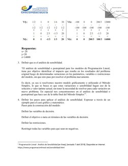 nuevo problema. En especial nos concentraremos en el análisis de sensibilidad o