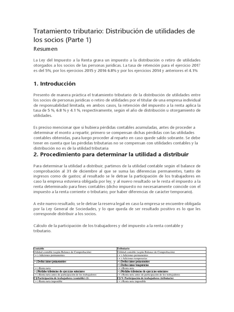 Tratamiento tributario: Distribución de utilidades de