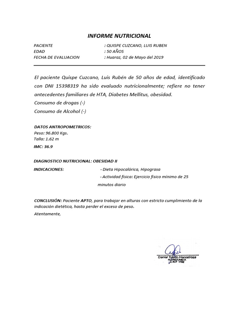INFORME NUTRICIONAL