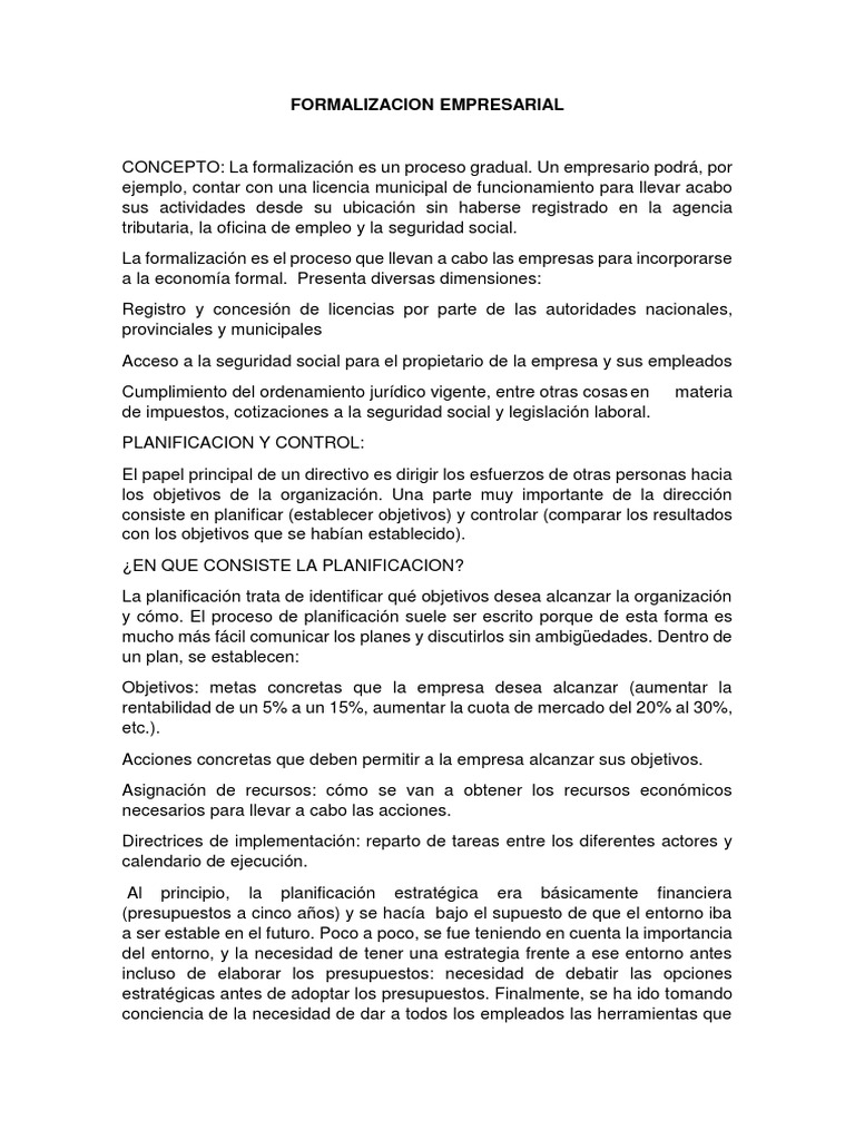 CONCEPTO: La formalización es un proceso gradual. Un empresario podrá, por