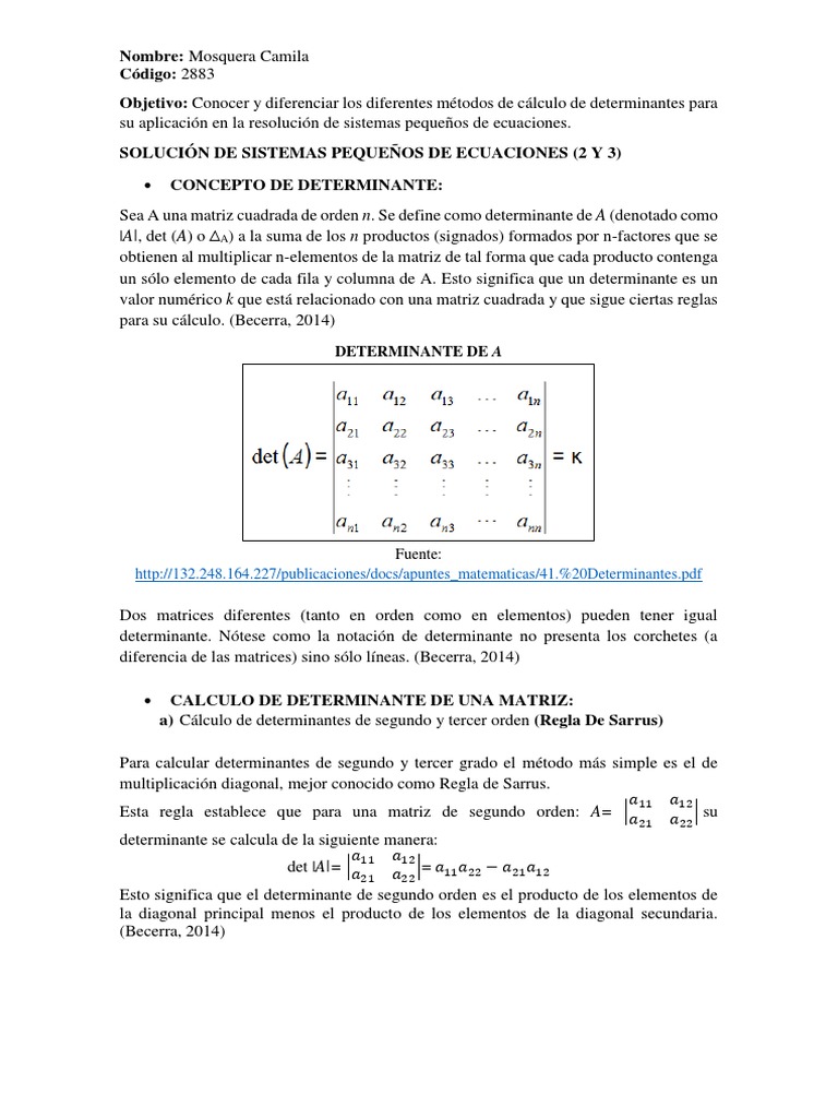 Becerra, J. M. (2014). MATEMÁTICAS BÁSICAS. Obtenido de Determiantes:
