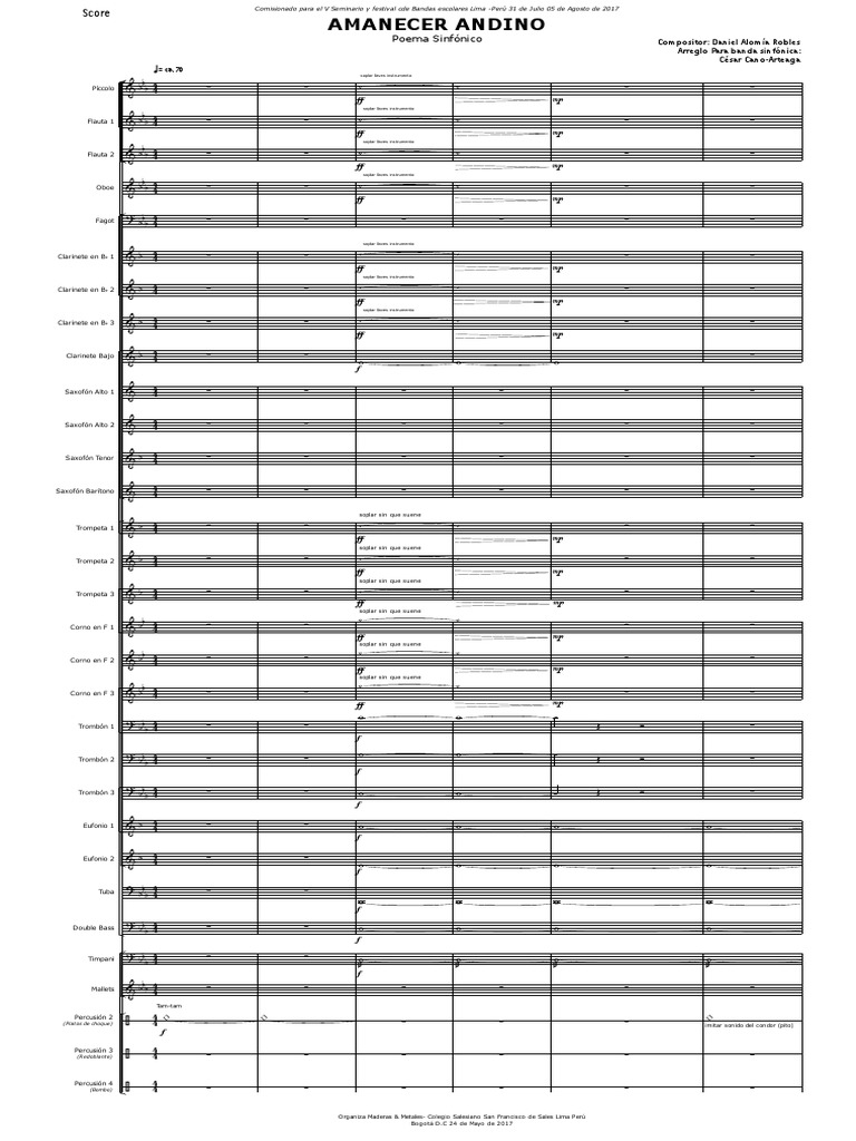 Partitura de "Amanecer Andino" para Banda Sinfónica