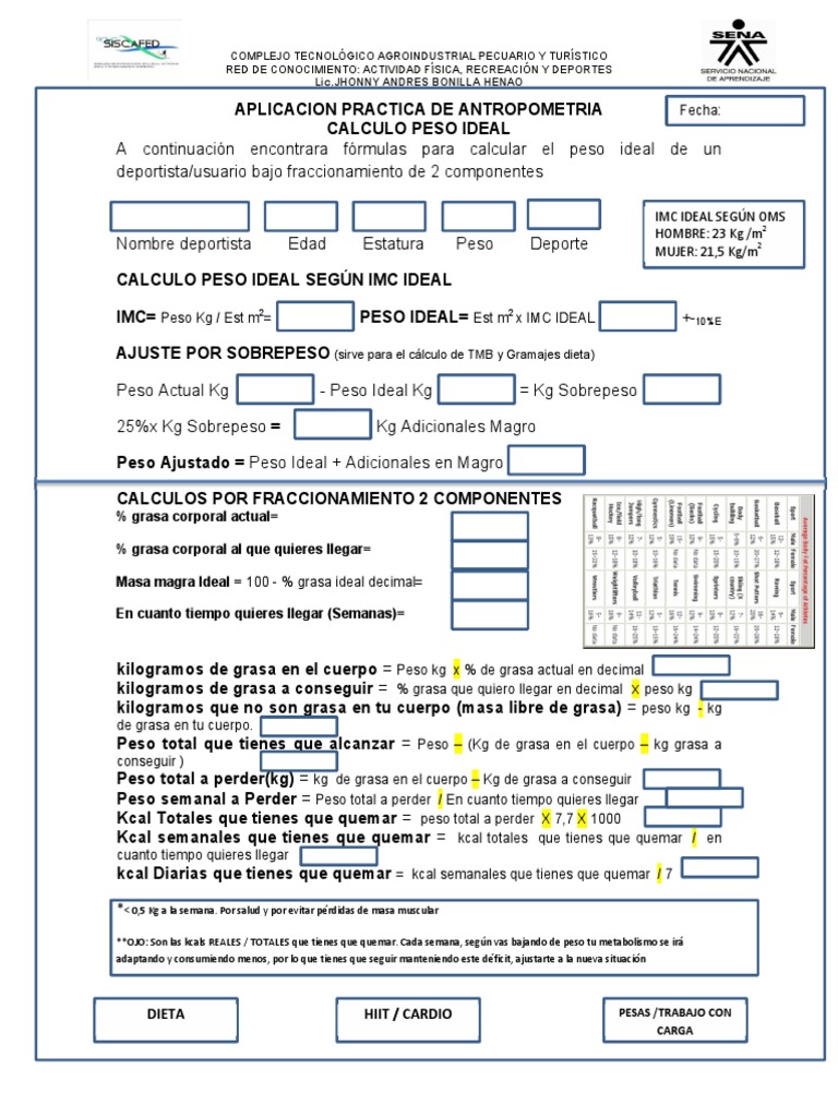 APLICACION PRACTICA DE ANTROPOMETRIA Fecha: