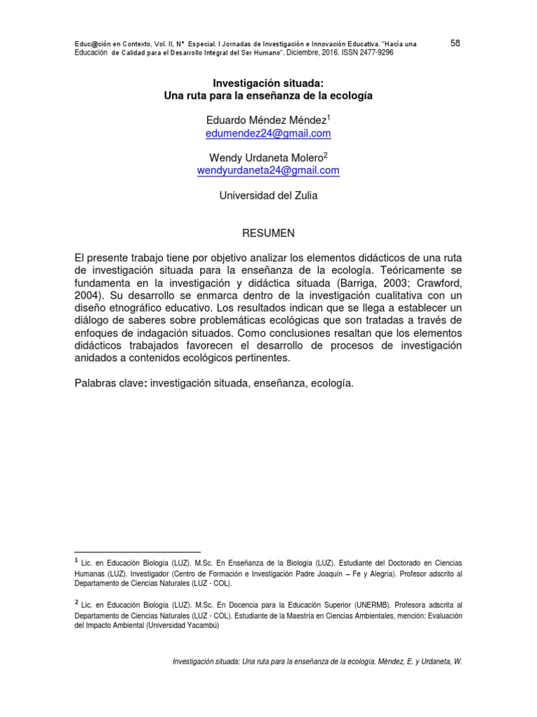 de investigación situada para la enseñanza de la ecología. Teóricamente se