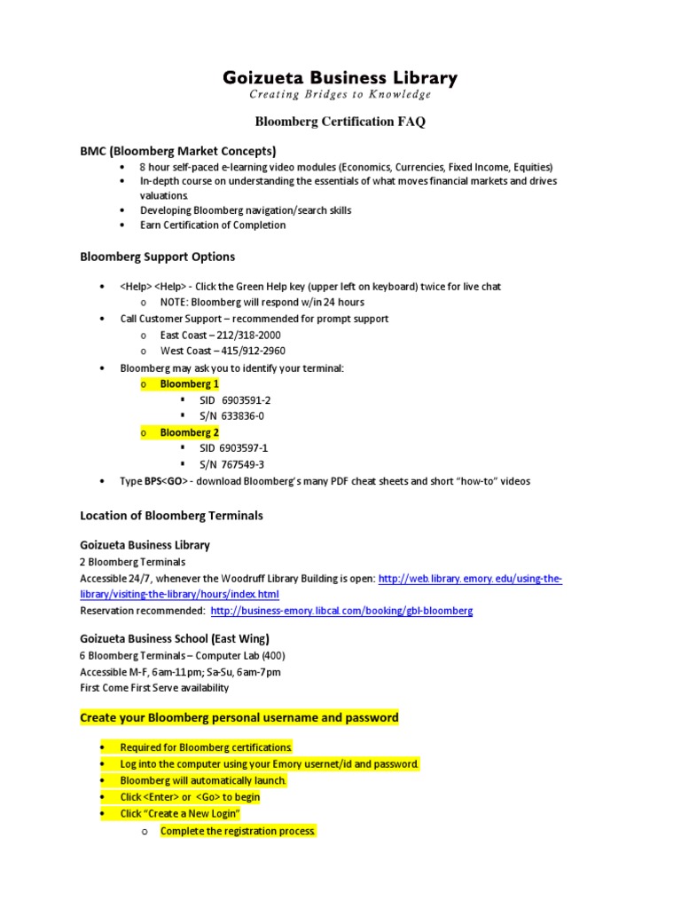 If you are brand new to using Bloomberg or would like a refresher before starting the BMC Certification, go to: