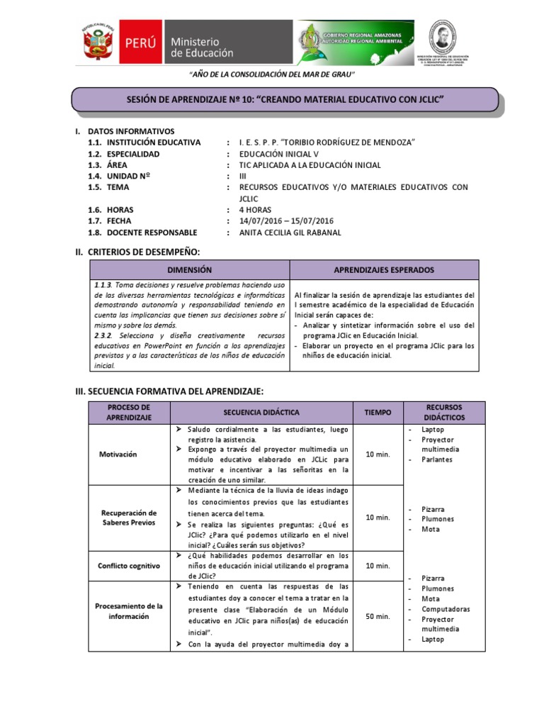 SESIÓN DE APRENDIZAJE Nº 10: “CREANDO MATERIAL EDUCATIVO CON JCLIC”