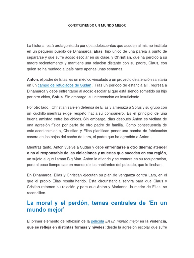 El primer elemento de reflexión de la película En un mundo mejor es la violencia,
